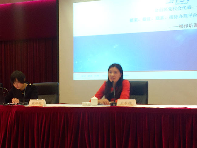 11月22日,在中共上海市金山区委组织部的组织下,我公司对具体使用该平台的,来自金山区各部门、各街镇的70名人员开展“金山区党代会代表提案、提议、联系、接待办理平台”的专业培训会。