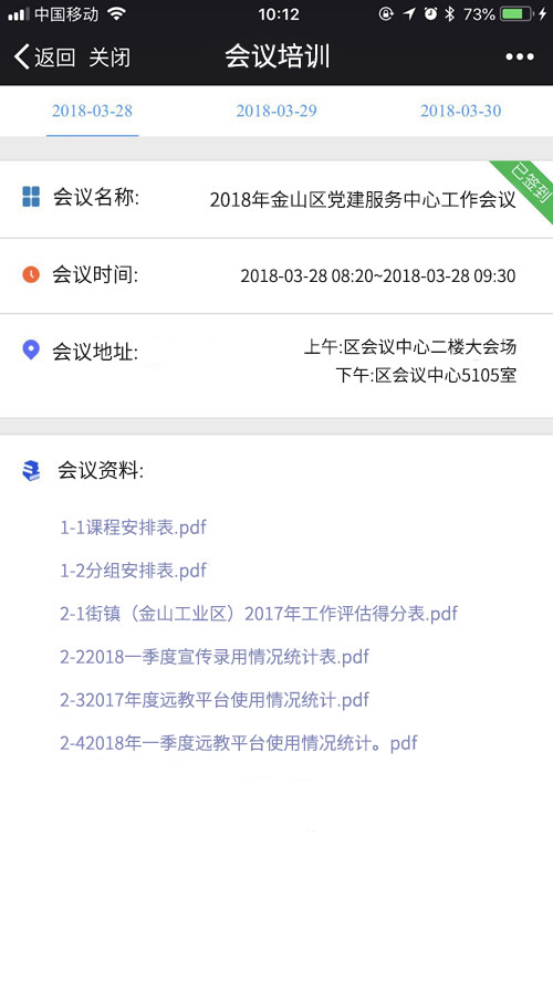 今年3月28日,我司承建的金山区基层党建信息化平台在“金山区党建服务中心工作会议暨党务实务培训班”上启用智慧党建会议签到模式,“这次的会议别出心裁,紧跟时代,没有纸质的会议材料,通过扫二维码就可以签到、查看会议资料,很方便!”这场重要的工作会议,没有一片纸!