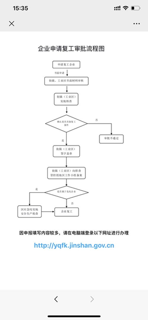 开设企业开工(复工)申报微信小程序和专属网页,为在金生产型企业复工复产提供网络报批平台,进一步方便企业在线快速、便捷填报信息,保障企业规范、安全、有序复工,尽早恢复生产。