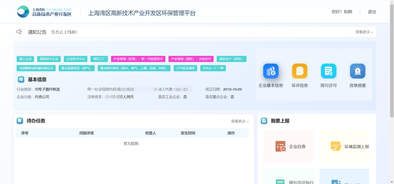 正式使用后,系统实现了对园区内348家企业环保信息数据的管理与记录。包括整合环评信息149条;排污许可329条;应急减排171条等,形成了专项环保信息管理平台。