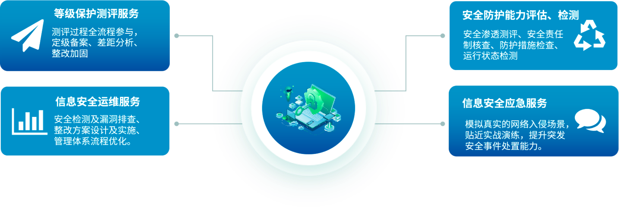 安全渗透测试、安全责任制核查、防护措施检查、运行状态检测。