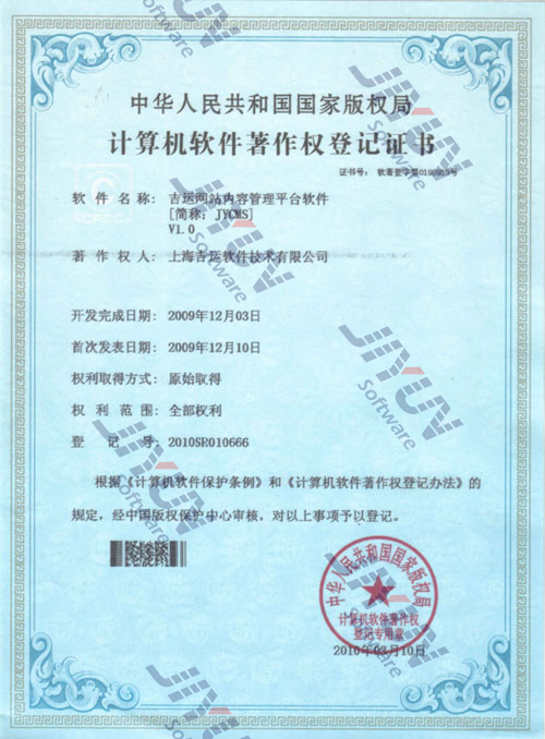 我公司自主研发的产品“吉运网站内容管理系统(简称JYCMS)”成功进行软件著作权登记。