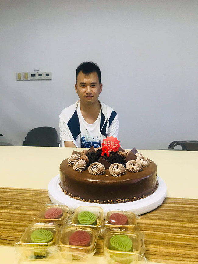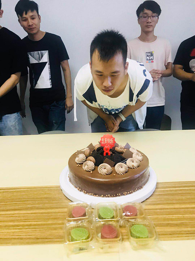 9月26日15时,会议室内已笑声朗朗,弥漫着幸福、欢乐的氛围。此次的生日会正逢中秋佳节,蛋糕、祝福早已一切准备就绪,寿星在众人的歌声中入场。