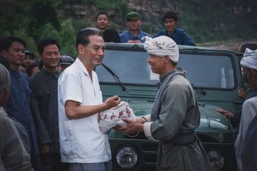 在宴请延安的老乡时,周恩来总理能叫出他们的名字,讲起当年的故事,又与老乡们一起蹲在地上吃小米饭。得知老乡们粮食短缺、生活拮据的困境,周恩来总理十分心痛。