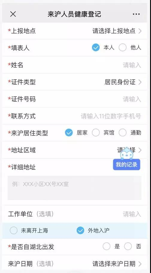 根据上海市政府最新要求,来沪、返沪人员经道口、口岸入沪时,必须进行健康信息登记。居民可通过“来沪人员个人健康信息填报”专区,链接进入全市统一的“健康云”平台,完成相关信息录入。