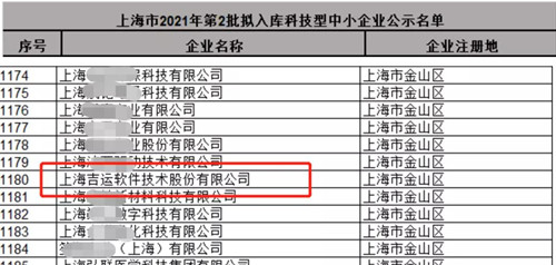 4月12日第二批拟入库科技型中小企业名单正式出炉,我司(上海吉运软件技术股份有限公司)成功拟入库。