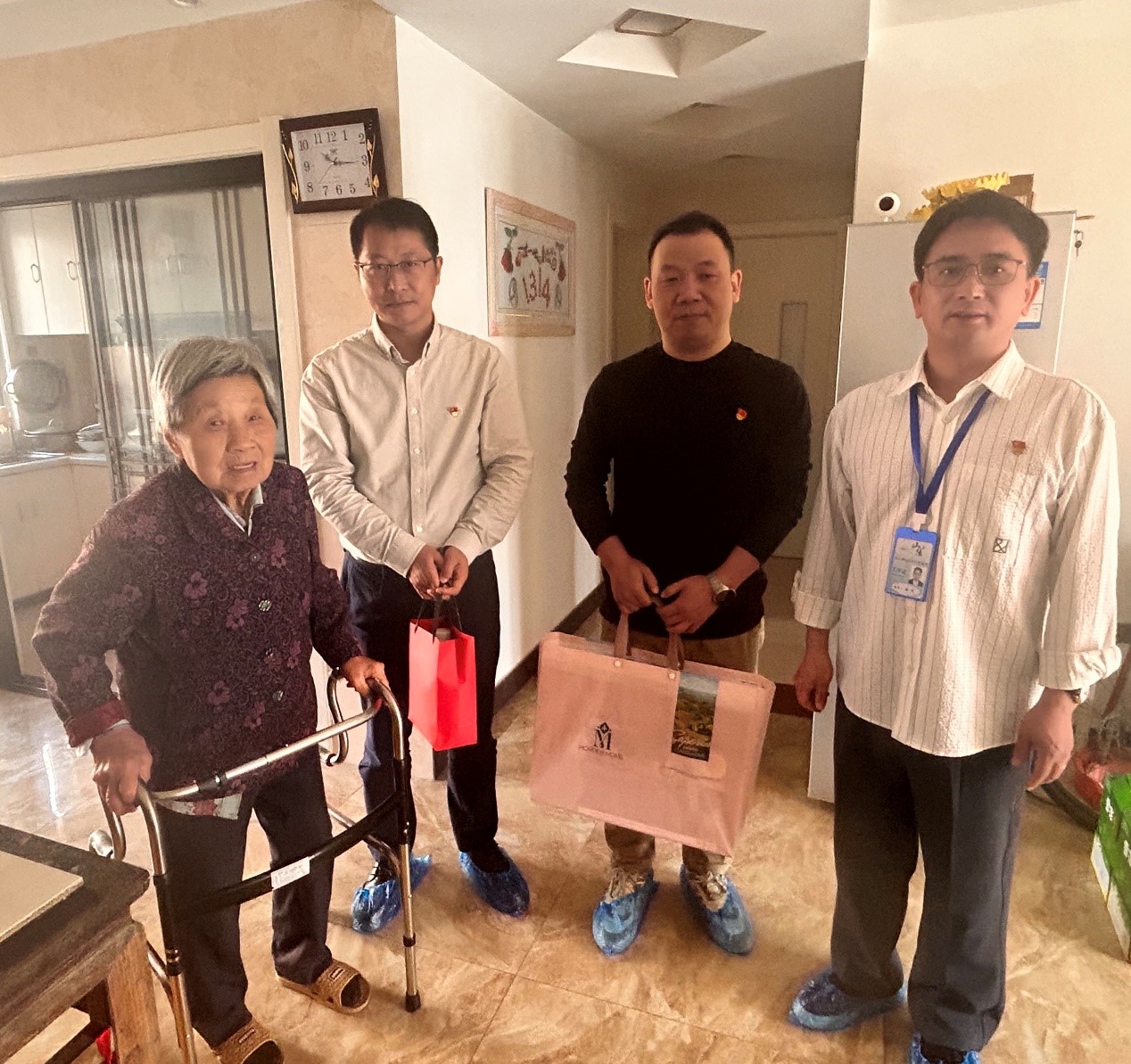 吉运公司党支部书记孔春辉及公司领导迟爱清走进慰问家庭,与老人们亲切交谈,唠起家常,详细了解老人们的生活起居和身体情况,并为他们送上暖心的慰问品,让老人们充分体会到党和吉运人对他们的关怀之情。