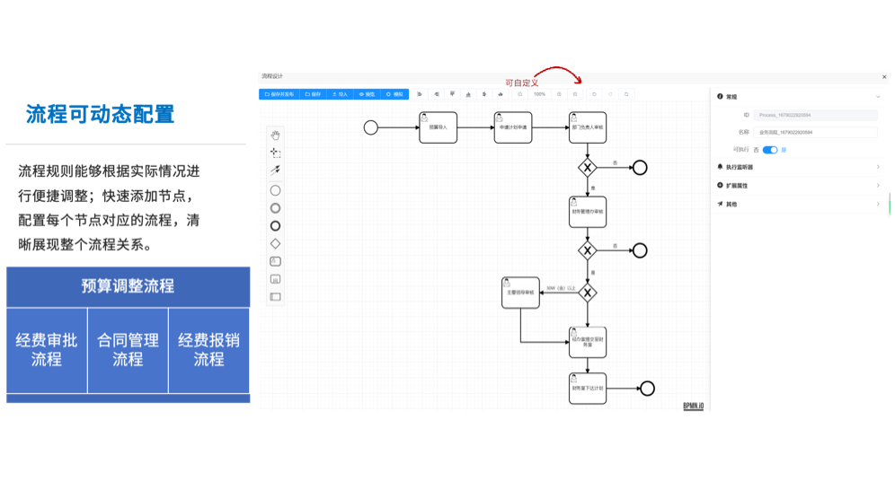支持用户通过流程图、决策表等方式设计业务逻辑,使得复杂的业务流程得以简化。